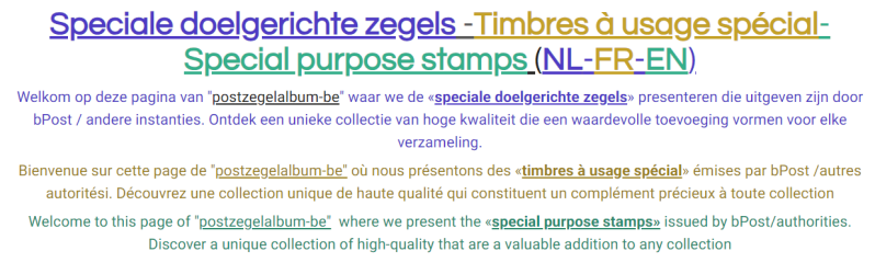 Speciale doelgerichte zegels-Timbres à usage spécial-Special purpose stamps (NL-FR-EN) | postzegelalbum-be